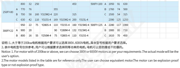 根据所输送介质的不同,FY型立式液下泵接触液体部分的材质可选用铸铁(用符号H表示)、铸钢1Cr18Ni9Ti(用符号B表示)、1Cr18Ni12Mo2Ti(用符号M表示)、301、 304L、 316、316L、904、Lewmet合金、20号合金等材料制造。